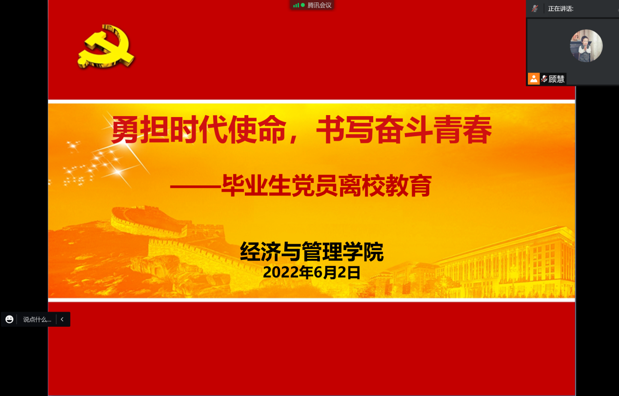 最后,顾慧就毕业生党员离校注意事项以及组织关系转移等相关工作做了专题培训,并强调及时完成组织关系转接的重要性,助力毕业生党员顺利落实组织关系转接手续。